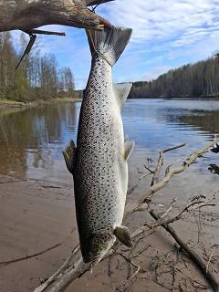 Koskiosuudelle nousee merestä lohi sekä erityisesti meritaimen. Koskille istutetaan myös runsaasti kirjolohta saalisvarmuutta takaamaan. Alueella esiintyy myös runsaasti kookasta kuhaa sekä toutainta.